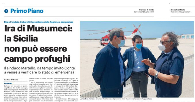Gds: “Ira di Musumeci « La Sicilia non può essere campo profughi”»