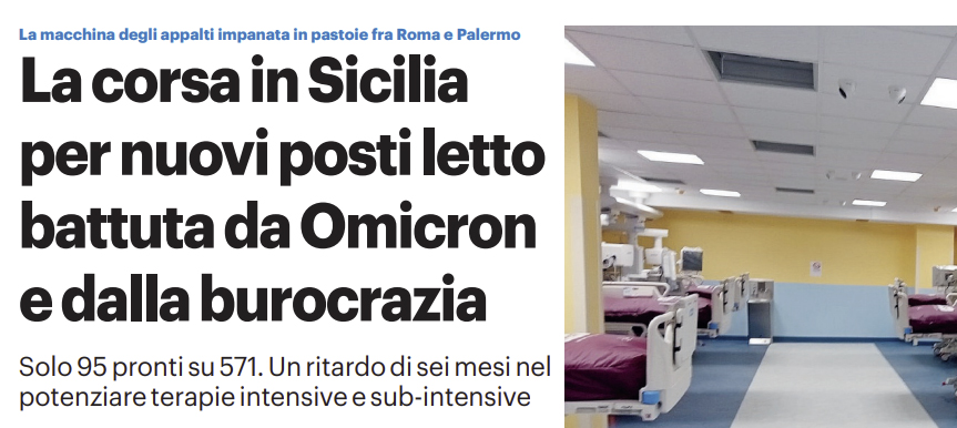 Gds: “La corsa in Sicilia per nuovi posti letto, battuta da Omicron e dalla burocrazia”