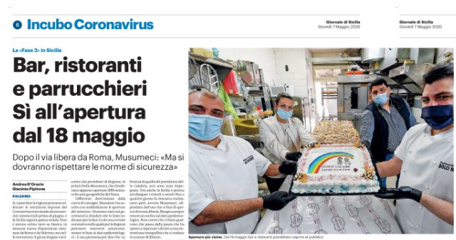 Gds: “La «Fase 2» in Sicilia. Bar, ristoranti e parrucchieri. Sì all’apertura dal 18 maggio. Musumeci: «Ma si dovranno rispettare le norme di sicurezza»”
