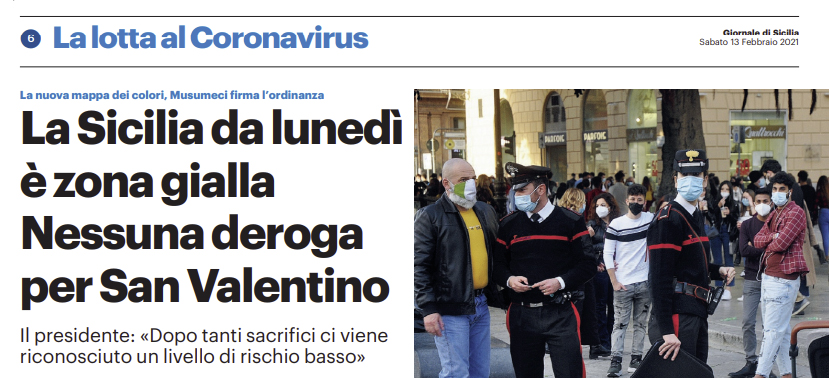 Gds: “La Sicilia da lunedì è zona gialla. Nessuna deroga per San Valentino”