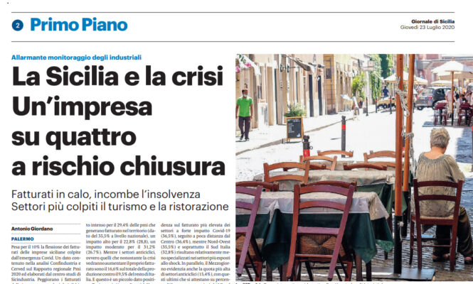 L’edizione odierna del “Giornale di Sicilia” parla della Sicilia e della crisi Covid. Peggiorano i fatturati delle imprese ma anche i dati di bilancio. Il che provoca un aumento delle pmi a rischio insolvenza. Nelle previsioni più pessimistiche in Sicilia più di un’impresa su quattro sarebbe ad alto rischio insolvenza contro un dato di più di dieci punti percentuali inferiore rispetto al Nord Est, il migliore comparto di Italia (27,6% contro il 14,2%). L’oggetto dell’analisi è lo stato di salute di 156 mila società italiane che, impiegando tra 10 e 249 addetti, rientrano nella definizione europea di piccola e media impresa e costituiscono l’ossatura della nostra economia.