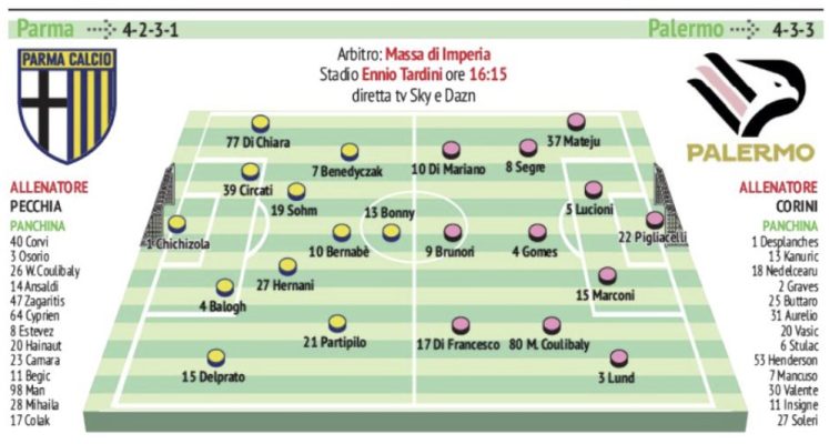L’edizione odierna de “Il Giornale di Sicilia” si sofferma sulle probabili formazioni della gara che il Palermo giocherà questo pomeriggio contro il Parma.