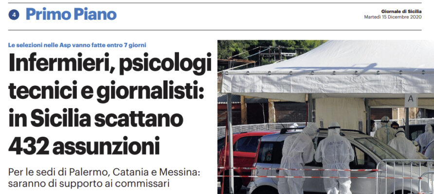 L’edizione odierna del “Giornale di Sicilia” si sofferma sulle 432 assunzioni dell’Asp.