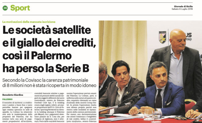 “Il tentativo di iscriversi «a credito» non è andato a buon fine e tanto potrebbe bastare per spegnere ogni residua speranza in sede di appello. La Covisoc ha sviscerato non solo le inadempienze della proprietà del Palermo, che ha omesso tutta una serie di pagamenti propedeutici all’iscrizione, ma anche ripianamenti non idonei alle norme previste dalla Figc, perché effettuati con compensazioni di crediti. Una modalità che il Manuale Licenze Nazionali non prevede e che,anche qualora venissero riconosciute le ragioni di Tuttolomondo in merito alla presunta truffa per il rilascio della fideiussione, di fatto renderebbe la domanda di iscrizione del club rosanero non conforme alle normative. La carenza patrimoniale da 8.272.286 euro che la Commissione di vigilanza contesta da tempo al Palermo non è stata ripianata, o meglio, è stata coperta in maniera inidonea rispetto a quanto previsto dai regolamenti, che non prevedono la possibilità di sanare la propria posizione fuori dai tempi prescritti. Qui non è intervenuto alcun impedimento legato alla fideiussione, bensì si è proceduto a compiere operazioni che non rientrano nelle modalità indicate dal Manuale Licenze Nazionali, per le quali la società non può più intervenire. La documentazione prodotta, stando a quanto scrive la Covisoc, è largamente costituita da contabili bancarie relative a pagamenti di presunti debiti sociali eseguiti da soggetti differenti dal socio controllante, ovvero da Palermo Football Club Spa. È la holding creata dagli inglesi, infatti, ad essere proprietaria dell’U.S. Città di Palermo. Sporting Network ha rilevato la holding (dunque il Palermo più Mepal),ma i pagamenti dovevano passare da lì. Cosa che, per l’organo di vigilanza, non è avvenuta. Parte delle contabili bancarie esibite, inoltre, dà conto solo dell‘effettuazione di pagamenti verso i creditori e per la Covisoc non può integrare una forma di patrimonializzazione”.