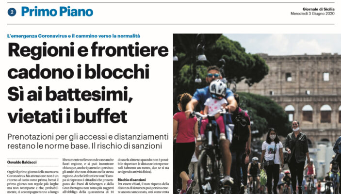 Gds: “L’emergenza Coronavirus e il cammino verso la normalità. Regioni e frontiere, cadono i blocchi. Sì ai battesimi, vietati i buffet. Resta rischio sanzioni”