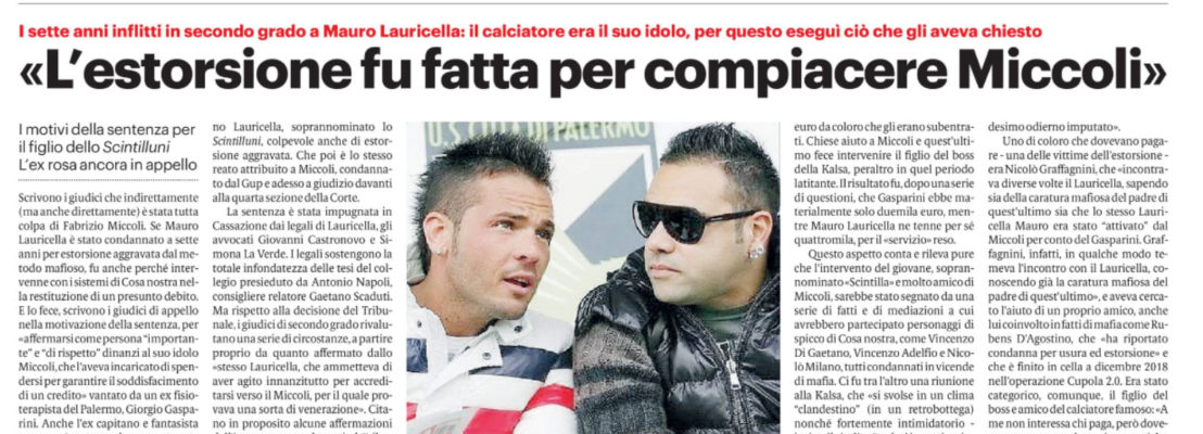 L’edizione odierna del “Giornale di Sicilia” si sofferma sulla vicenda giudiziaria relativa a Fabrizio Miccoli, ex capitano del Palermo. Ecco quanto riportato: “Scrivono i giudici che indirettamente (ma anche direttamente) è stata tutta colpa di Fabrizio Miccoli. Se Mauro Lauricella è stato condannato a sette anni per estorsione aggravata dal metodo mafioso, fu anche perché intervenne con i sistemi di Cosa nostra nella restituzione di un presunto debito. E lo fece, scrivono i giudici di appello nella motivazione della sentenza, per «affermarsi come persona “importante” e “di rispetto” dinanzi al suo idolo Miccoli, che l’aveva incaricato di spendersi per garantire il soddisfacimento di un credito» vantato da un ex fisioterapista del Palermo, Giorgio Gasparini. Anche l’ex capitano e fantasista rosanero è stato condannato a tre anni e sei mesi in primo grado (col rito abbreviato), mentre in un processo diverso, celebrato col rito ordinario, Lauricella aveva avuto un anno per violenza privata, in Tribunale; la terza sezione della Corte d’appello ha però accolto l’appello del pm Francesca Mazzocco e del pg Ettore Costanzo, portando a sette gli anni di carcere, riconoscendo il figlio del boss Antonino Lauricella, soprannominato lo Scintilluni, colpevole anche di estorsione aggravata. Che poi è lo stesso reato attribuito a Miccoli, condannato dal Gup e adesso a giudizio davanti alla quarta sezione della Corte. La sentenza è stata impugnata in Cassazione dai legali di Lauricella, gli avvocati Giovanni Castronovo e Simona La Verde. I legali sostengono la totale infondatezza delle tesi del collegio presieduto da Antonio Napoli, consigliere relatore Gaetano Scaduti. Ma rispetto alla decisione del Tribunale, i giudici di secondo grado rivalutano una serie di circostanze, a partire proprio da quanto affermato dallo «stesso Lauricella, che ammetteva di aver agito innanzitutto per accreditarsi verso il Miccoli, per il quale provava una sorta di venerazione». Citano in proposito alcune affermazioni dell’imputato, rese davanti al Tribunale: «Avendo a Miccoli accanto io, era il mio sogno… perché per me è la mia vita, io sono malato di lui». E non solo: «Volevo fare bella figura con Miccoli». In appello Lauricella aveva «evidenziato che il Miccoli all’epoca dei fatti si stava spendendo per cercare di trovargli un posto come calciatore in qualche squadra di professionisti o semiprofessionisti». Ipotizzata dunque «una sorta di do ut des» tra i due. La questione al centro dei due processi è identica: al momento di sciogliere e ricostituire con nuovi membri la società che gestiva la discoteca Paparazzi di Isola delle Femmine, era sorto – tra il 2010 e il 2011 – un contenzioso economico. Gasparini, che era in società anche con Andrea Barzagli, campione del mondo ed ex rosanero, poi passato al Wolfsburg e alla Juventus, sosteneva di dover avere 12 mila euro da coloro che gli erano subentrati. Chiese aiuto a Miccoli e quest’ultimo fece intervenire il figlio del boss della Kalsa, peraltro in quel periodo latitante. Il risultato fu, dopo una serie di questioni, che Gasparini ebbe materialmente solo duemila euro, mentre Mauro Lauricella ne tenne per sé quattromila, per il «servizio» reso. Questo aspetto conta e rileva pure che l’intervento del giovane, soprannominato «Scintilla» e molto amico di Miccoli, sarebbe stato segnato da una serie di fatti e di mediazioni a cui avrebbero partecipato personaggi di spicco di Cosa nostra, come Vincenzo Di Gaetano, Vincenzo Adelfio e Nicolò Milano, tutti condannati in vicende di mafia. Ci fu tra l’altro una riunione alla Kalsa, che «si svolse in un clima “clandestino” (in un retrobottega) nonché fortemente intimidatorio – insiste il giudice Scaduti in motivazione – laddove alcuni dei soggetti presenti alla riunione organizzata dal Lauricella, dopo aver rimarcato che erano stati invitati dallo stesso odierno imputato, hanno deliberatamente prospettato ed evocato – già in principio – la valenza mafiosa del padre di Lauricella Mauro, in modo tale che detta valenza illuminasse, anche solo di luce riflessa, pure la figura del medesimo odierno imputato». Uno di coloro che dovevano pagare – una delle vittime dell’estorsione – era Nicolò Graffagnini, che «incontrava diverse volte il Lauricella, sapendo sia della caratura mafiosa del padre di quest’ultimo sia che lo stesso Lauricella Mauro era stato “attivato” dal Miccoli per conto del Gasparini. Graffagnini, infatti, in qualche modo temeva l’incontro con il Lauricella, conoscendo già la caratura mafiosa del padre di quest’ultimo», e aveva cercato l’aiuto di un proprio amico, anche lui coinvolto in fatti di mafia come Rubens D’Agostino, che «ha riportato condanna per usura ed estorsione» e che è finito in cella a dicembre 2018 nell’operazione Cupola 2.0. Era stato categorico, comunque, il figlio del boss e amico del calciatore famoso: «A me non interessa chi paga, però dovete pagare», aveva detto ai presunti debitori dell’ex fisioterapista. A parte gli incontri e le singole intimidazioni, i giudici rilevano che l’intervento di Lauricella è quello di un estraneo al contesto: non era lui il creditore ma agiva per conto terzi, senza averne alcun titolo. E rivendicando il proprio ruolo. Soprattutto in base al cognome che portava.