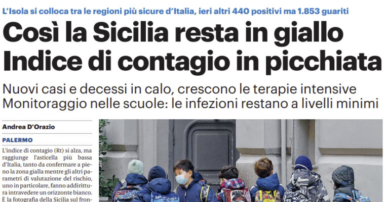 L’edizione odierna del “Giornale di Sicilia” si sofferma sulla situazione epidemiologica in Sicilia.