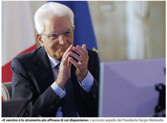 Gds: “Mattarella “E’ l’ora della responsabilità. Il vaccino un dovere, è lo strumento più efficace per difenderci e tutelare i più deboli”