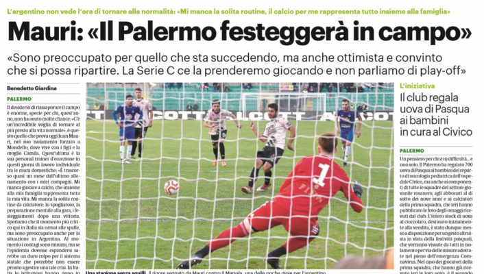 Gds: “Mauri: «Il Palermo festeggerà in campo. La Serie C ce la prenderemo giocando e non parliamo di play-off»”