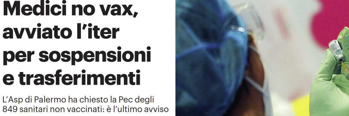 L’edizione odierna de “Il Giornale di Sicilia” si è soffermato sulla situazione che riguarda i medici no-vax in Sicilia.
