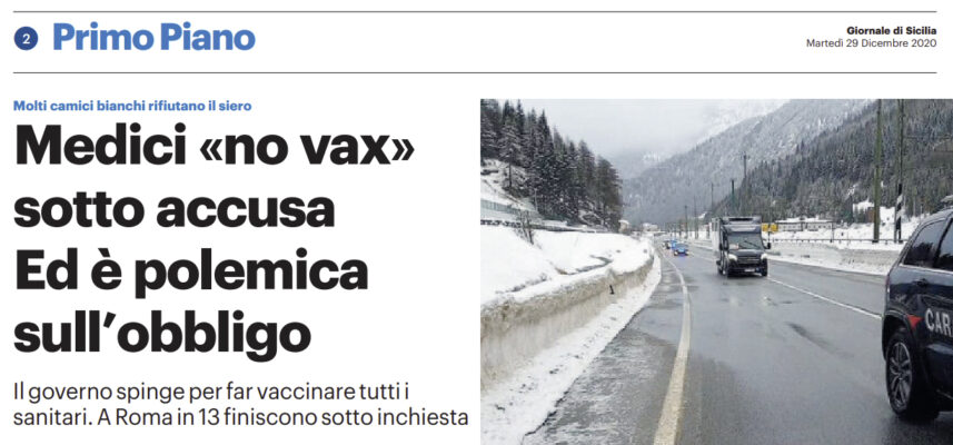 L’edizione odierna del “Giornale di Sicilia” si sofferma sui medici “No Vax”.
