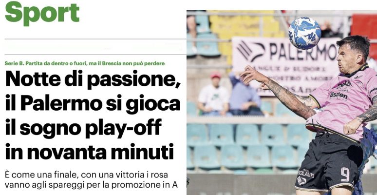 Gds: “Notte di passione, il Palermo si gioca il sogno playoff in novanta minuti”