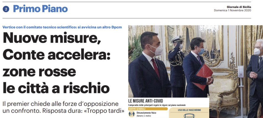 L’edizione odierna del “Giornale di Sicilia” si sofferma sulle nuove misure restrittive anti-Covid 19.