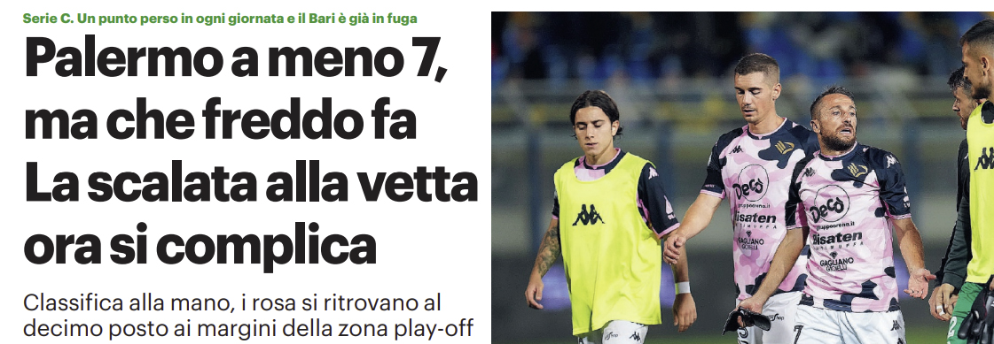 Gds: “Palermo a meno 7, ma che freddo fa La scalata alla vetta ora si complica”