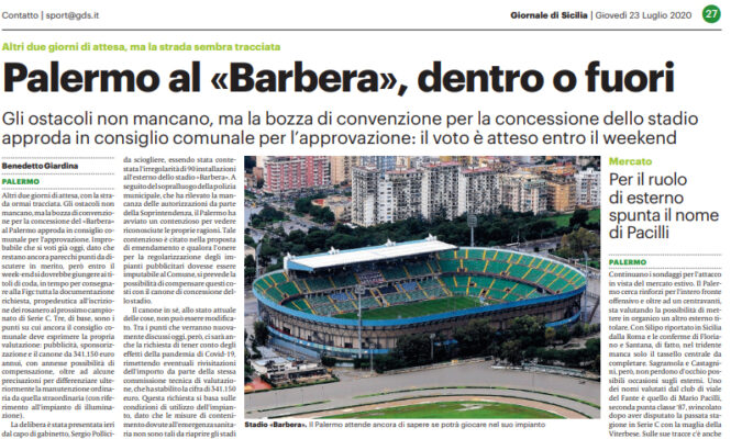 Gds: “Palermo al «Barbera», dentro o fuori. Gli ostacoli non mancano, il voto è atteso entro il weekend”