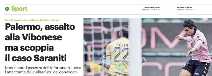 Gds: “Palermo, assalto alla Vibonese ma scoppia il caso Saraniti”