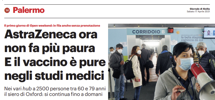 Gds: “Palermo. AstraZeneca ora non fa più paura. E il vaccino è pure negli studi medici”