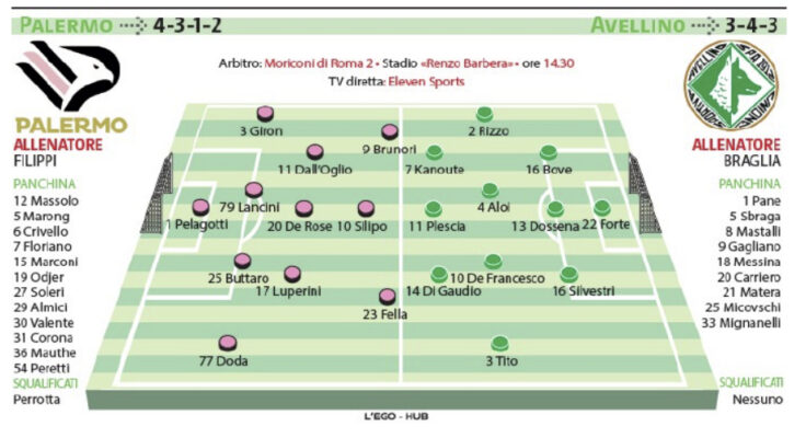 L’edizione odierna de “Il Giornale di Sicilia” ha stilato le probabili formazioni del match tra Palermo e Avellino in programma oggi.