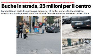 Si chiama Progetto integrato di riqualificazione e rigenerazione, sovvenzionato dal ministero della Cultura per un importo complessivo di 74 milioni, circa 25 di essi dedicati solamente alle pavimentazioni. Per inquadrate bene l’intera faccenda è bene ricordare che l’operazione tende ad alcuni importanti interventi di recupero e valorizzazione di palazzi e immobili storici che potranno accogliere alcune funzioni sociali, culturali ed educative a supporto della rigenerazione urbana.