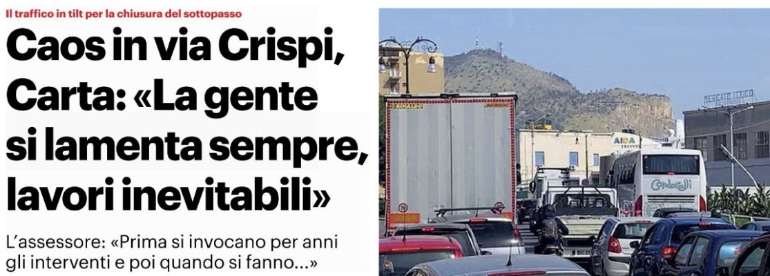 L’edizione odierna de “Il Giornale di Sicilia” si sofferma sul caos in via Crispi per via dei lavori nel sottopassaggio.