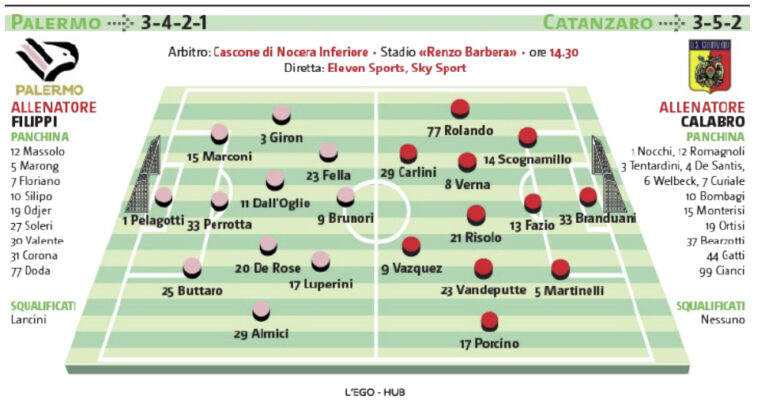 Palermo Con il Catanzaro Dall’Oglio arretra e Luperini più avanzato. È ancora emergenza in difesa.