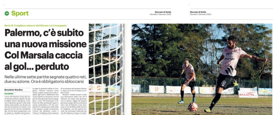 L’edizione odierna del “Giornale di Sicilia” si sofferma sulla sfida tra Palermo e Marsala. I rosanero vanno alla caccia del gol perduto: quattro gol nelle ultime sette partite, due sole marcature su azione. Una penuria di reti che ha contribuito alla crisi di metà campionato, con la risalita in classifica del Savoia e l’arrivo delle prime sconfitte stagionali. Da quando si è interrotta la striscia di dieci successi consecutivi, il Palermo non è stato in grado di fare di più nella metà campo offensiva. Nel frattempo il Palermo ha fatto pochissimi passi in avanti, portandosi a 29 reti complessive in campionato e faticando a far segnare i propri centravanti. L’errore dal dischetto contro il Troina è l’emblema del momento complicato di Ricciardo, ma ha sbagliato dagli undici metri anche Sforzini, che non segna dal 6-0 al Corigliano più per problemi fisici che per demeriti propri. L’unico a trovare il gol su azione è stato Felici nelle sfide contro ACR Messina e Giugliano. Restano i freddi numeri a dare una dimensione della crisi che il Palermo, da ormai sette giornate, vive in attacco. Peggio dei quattro gol messi a segno dai rosa troviamo solo i due di Palmese e San Tommaso e i tre del Biancavilla. Persino il Corigliano, con due partite rinviate, ha comunque realizzato più reti del Palermo (cinque in altrettante partite), che nel nuovo anno deve cercare di sbloccarsi lì davanti. Nel 2020 è come se iniziasse una nuova stagione per gli uomini di Pergolizzi, chiamati a ripetere la cavalcata del girone d’andata e di confermare le cifre delle prime 17 giornate.