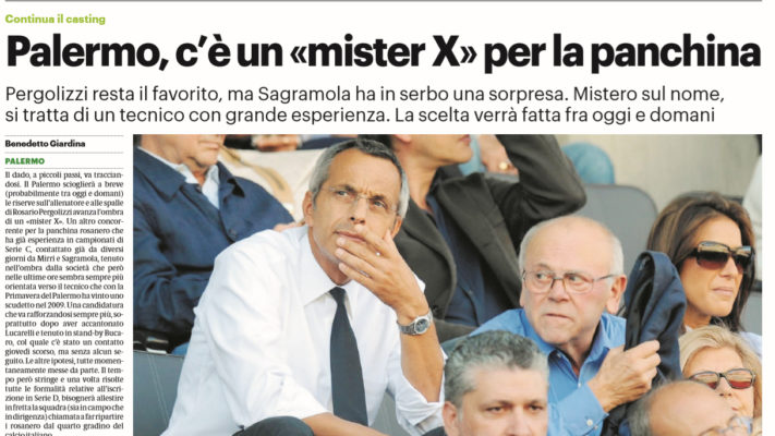 Gds: “Palermo, c’è un «mister X» per la panchina. Pergolizzi resta il favorito, ma Sagramola ha in serbo una sorpresa. Le ultime”