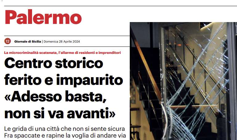 L’edizione odierna de “Il Giornale di Sicilia” si sofferma sul centro storico sotto attacco da parte dei vandali e dei ladri, con particolare attenzione a Via Maqueda.