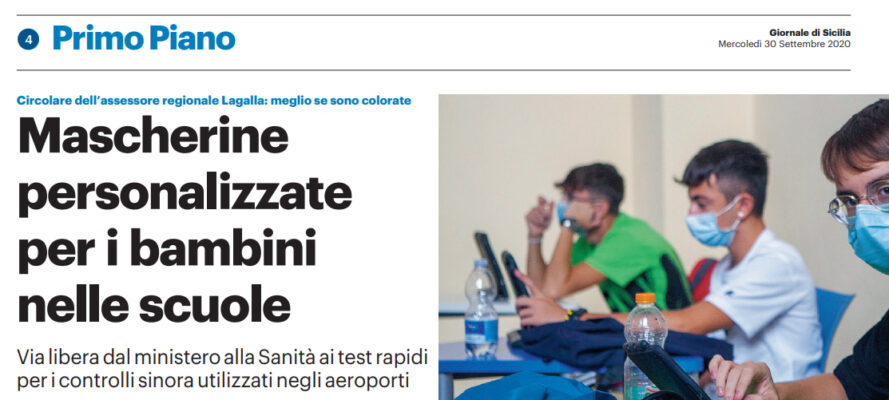 Gds: “Palermo. Circolare dell’assessore regionale Lagalla. Meglio se sono colorate. Mascherine personalizzate per i bambini nelle scuole”