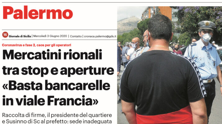 Gds: “Palermo. Coronavirus e fase 2, caos per gli operatori. Mercatini rionali tra stop e aperture «Basta bancarelle in viale Francia»”
