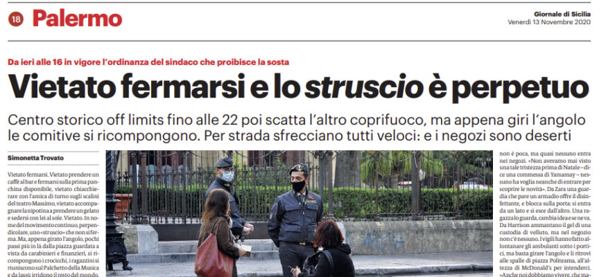 Gds: “Palermo. Da ieri alle 16 in vigore l’ordinanza del sindaco che proibisce la sosta. Vietato fermarsi e lo struscio è perpetuo”