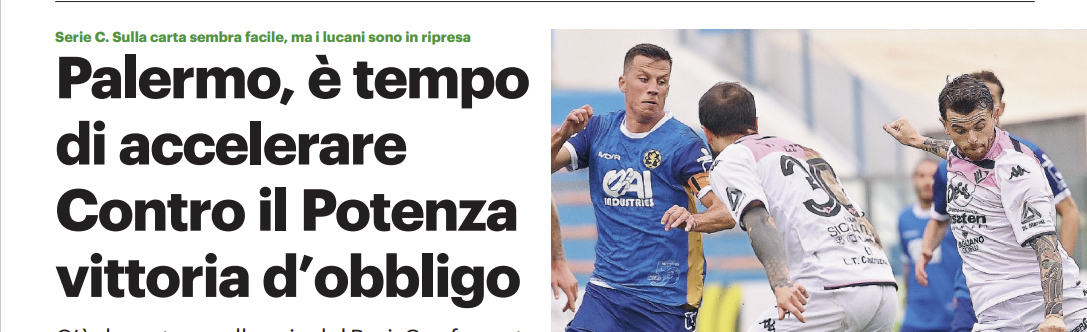L’edizione odierna de “Il Giornale di Sicilia” si sofferma sulla gara di oggi tra Palermo e Potenza con i rosanero obbligati a vincere per restare sulla scia del Bari.