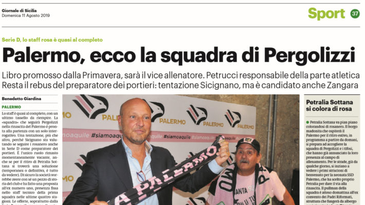 L’edizione odierna del “Giornale di Sicilia” si sofferma sullo staff del tecnico Pergolizzi. Sicignano sta valutando se seguire i rosanero come preparatore dei portieri. La società vorrebbe avere con sé un pezzo di storia del club e ha fatto una proposta all’ex numero uno. Lo ha cercato l’Empoli, ma adesso il Palermo è lì ad attenderlo. Avanza anche la candidatura di Zangara, che si è recato presso gli uffici della Damir. E’ un profilo valutato per il vivaio del Palermo, ma non è da escludere che possa fare la spola tra prima squadra e settore giovanile. Ad assistere il tecnico palermitano sarà Libro, fino alla passata stagione secondo di Scurto nella Primavera rosanero. La parte atletica sarà curata da Petrucci. L’ultimo tassello, che si dividerà tra prima squadra e settore giovanile, sarà Compagno. Gli staff tecnici delle giovanili verranno ufficializzati nella prossima settimana, mentre per quelli della prima squadra si attende solo il sì di Sicignano.