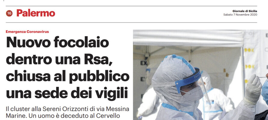 L’edizione odierna del “Giornale di Sicilia” si sofferma sul focolaio di Covid-19 all’Istituto geriatrico siciliano-Sereni Orizzonti di via Messina Marine.