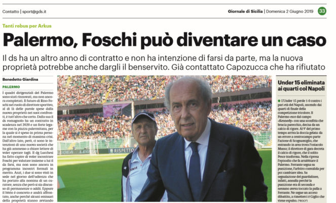 Gds: “Palermo, Foschi può diventare un caso. Già contattato Capozucca che ha rifiutato, i dettagli”