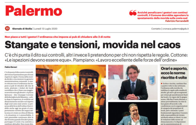 L’edizione odierna de “Il Giornale di Sicilia” analizza la stangata alla movida palermitana e l’ordinanza che impone ai pub di chiudere alle due di notte. Gestori in rivolta. C’è chi punta il dito contro i controlli, altri invece li pretendono per chi non rispetta le regole.