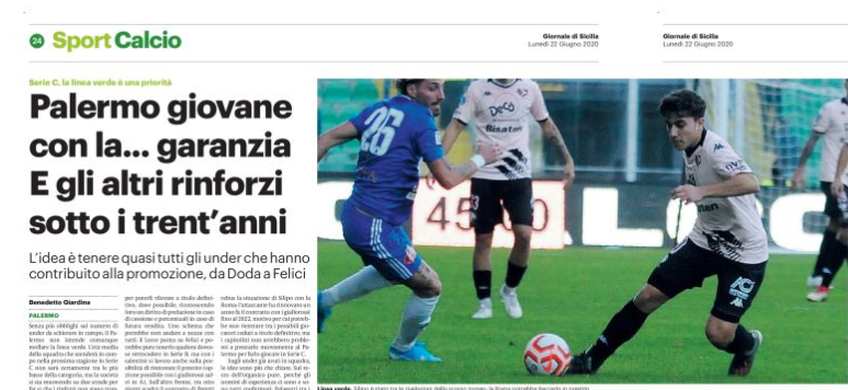 L’edizione odierna del “Giornale di Sicilia” parla della permanenza di Doda e Lucca in rosanero a titolo definitivo. Si proverà inoltre anche a trattenere Langella, Kraja e Fallani. Rebus per la situazione Silipo: l’attaccante ha rinnovato un anno fa il contratto con la Roma fino al 2022, e quindi potrebbe non arrivare a titolo definitivo. I giallorossi sarebbero però propensi a prestarlo nuovamente al Palermo.