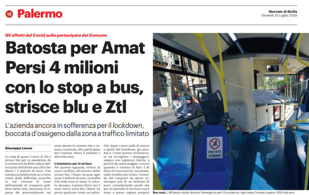 Gds: “Palermo. Gli effetti del Covid sulla partecipata del Comune. Batosta per Amat. Persi 4 milioni con lo stop a bus, strisce blu e Ztl”