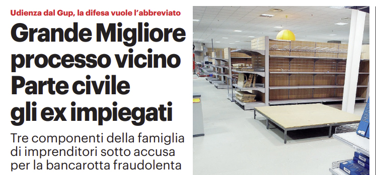 C’è chi, quando passa davanti a uno di quei negozi in cui ha passato la vita, ora guarda dall’altra parte perché il fallimento di quei magazzini ha cancellato un pezzo di città e la speranza di tanti lavoratori. Una ventina di loro punta a costituirsi parte civile nel procedimento e alcuni di loro sono assistiti dall’avvocato Paolo Grillo e non crede che sia stata tutta colpa della crisi ma che sia stato realizzato un piano per svuotare e far morire la società.