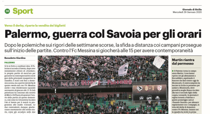 Gds: “Palermo, «guerra fredda» col Savoia per gli orari. Adesso…”