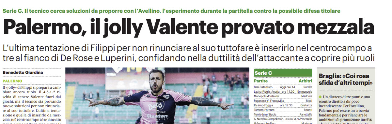 Da subentrato è stato schierato lì anche a Vibo Valentia, domenica scorsa, sempre sulla fascia sinistra. Contro l’Avellino, però, Filippi non appare intenzionato a metterlo così arretrato, tanto più contro una squadra che può contare su esterni offensivi di primo livello. I terzini faranno i terzini, dunque, e Valente farà quel che sa far meglio: adattarsi alla situazione e prepararsi all’ennesimo cambio di ruolo.