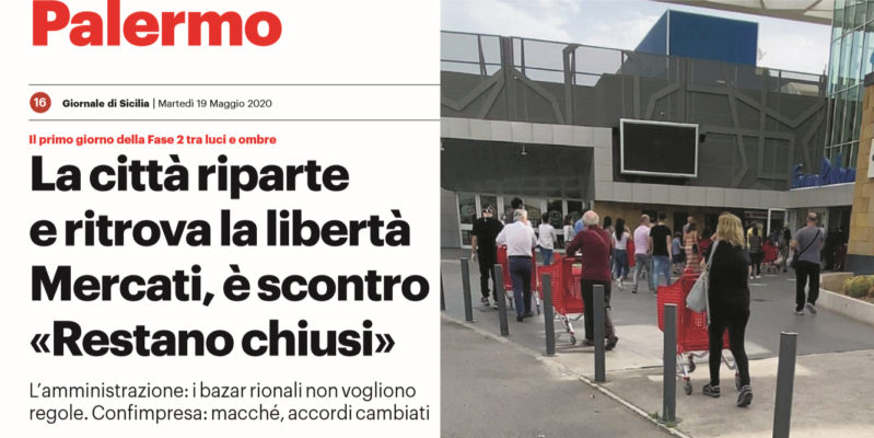 Gds: “Palermo. Il primo giorno della Fase 2 tra luci e ombre. La città riparte e ritrova la libertà. Mercati, è scontro «Restano chiusi»”