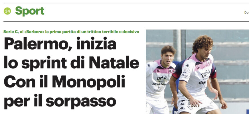 Gds: “Palermo, inizia lo sprint di Natale. Con il Monopoli per il sorpasso”