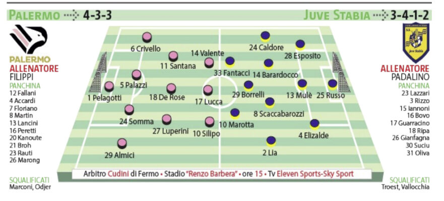 L’edizione odierna del Giornale di Sicilia si occupa delle probabili formazioni di Palermo-Juve Stabia, in campo oggi a partire dalle 15:00 al “Renzo Barbera”.