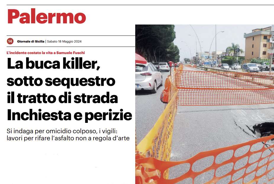 Gds: “Palermo, la buca killer, sotto sequestro il tratto di strada. Inchiesta e perizie”