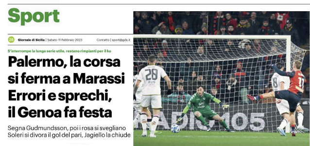 L’edizione odierna de “Il Giornale di Sicilia” si sofferma sul Palermo che esce sconfitto da Marassi.