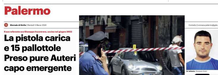 Gds: “Palermo, la pistola carica e 15 pallottole. Preso pure Auteri capo emergente”