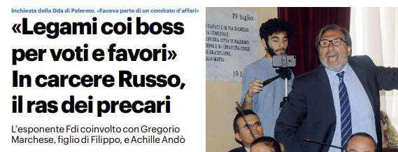 Gds: “Palermo. «Legami coi boss per voti e favori». In carcere Russo, il ras dei precari”