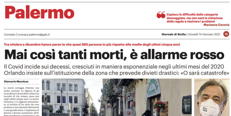Gds: “Palermo. Mai così tanti morti, è allarme rosso. Orlando insiste sull’istituzione della zona che prevede divieti drastici «O sarà catastrofe»”
