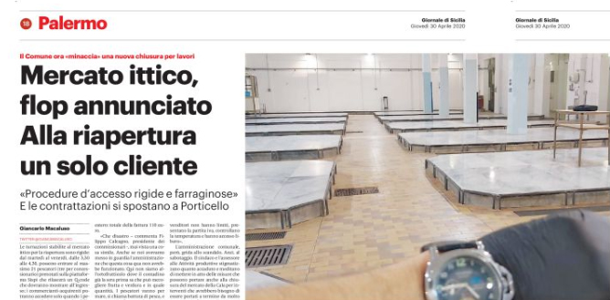 Gds: “Palermo. Mercato ittico, flop annunciato. Alla riapertura un solo cliente «Procedure d’accesso rigide e farraginose». E le contrattazioni si spostano a Porticello”